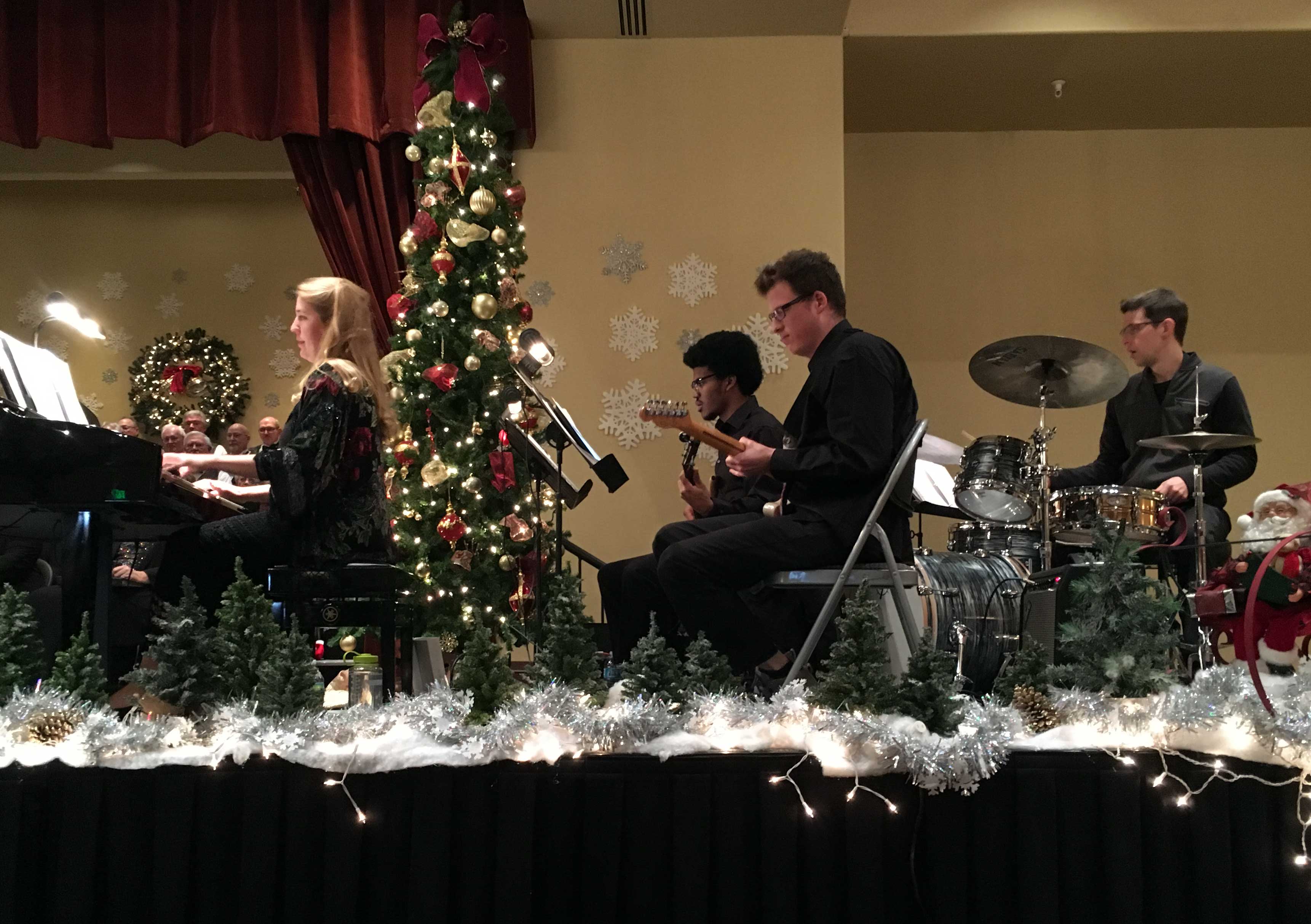 We were fortunate to be able to experience a Christmas concert at nearby Robson Ranch, a master planned retirement community. Elise regularly accompanies their choir rehearsals, as they prepare for two annual concert series. Her band, The Lowdown, was rebranded “The Robson Regulars” for the event, and opened the show with several Christmas favorites. Then the choir chipped in and sang a full program, including the arrival of Santa and his elves. It was fun to see how the choir adore and rely on her.