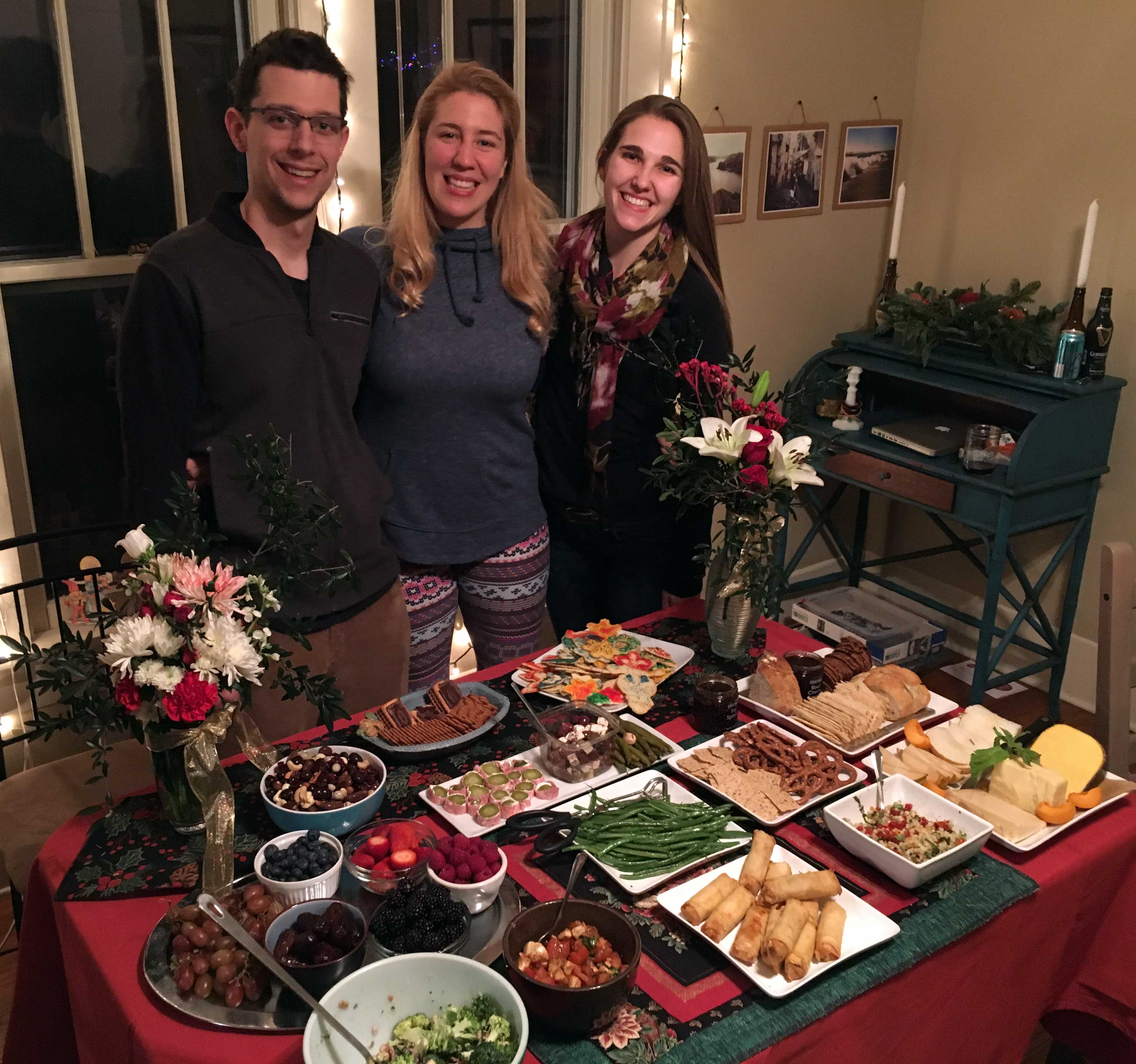We truly enjoy hanging out together, and don’t take times like this for granted: meals, walks, talks, games. Anna, Elise, and Matt busily made plans, laid in provisions, and prepared a feast for our “Monday as Christmas eve” repast. Even the work and antics in the kitchen provided a joyful, familiar, family quality to the season. It was quite a spread, and showcased each of their unique talents and styles.